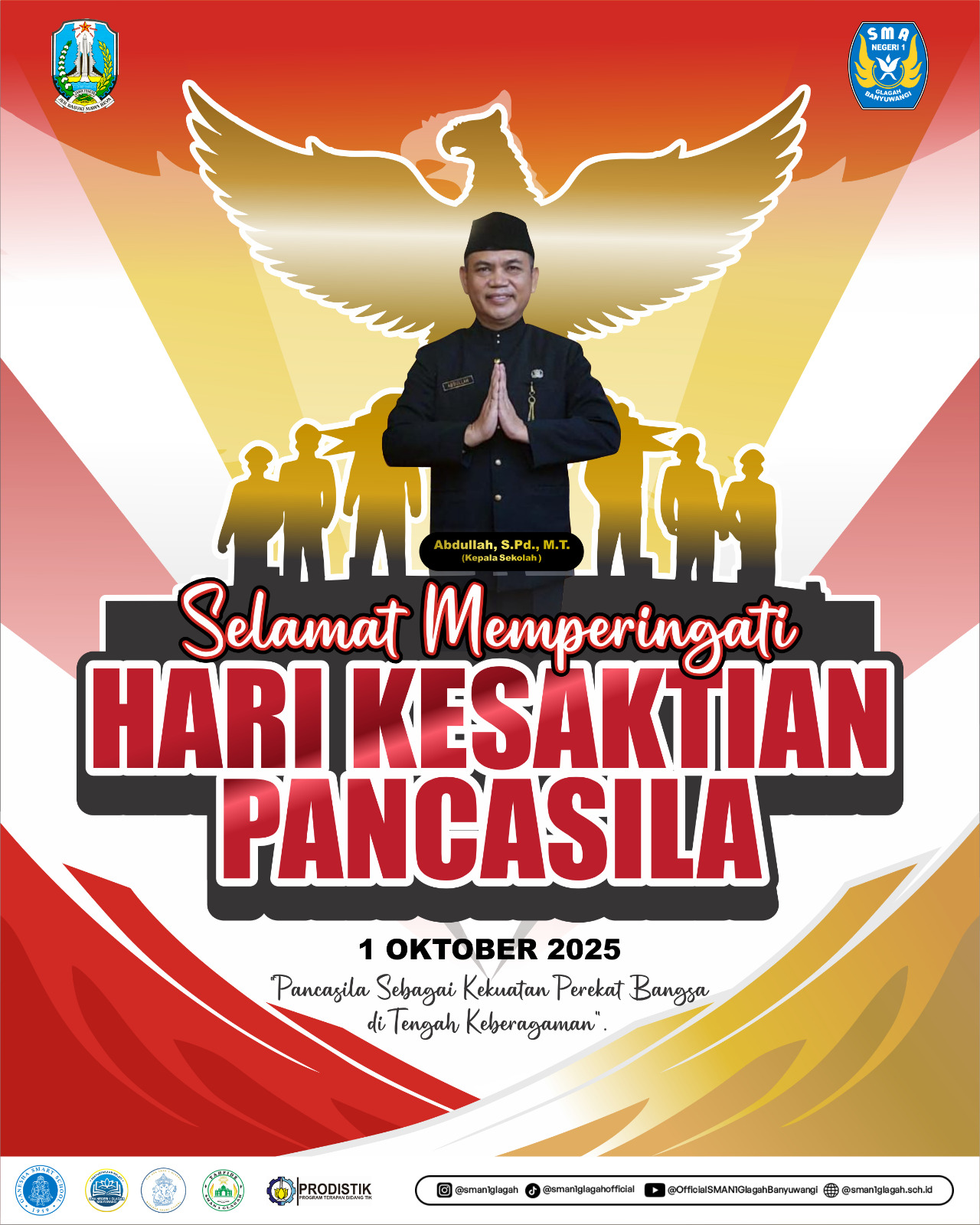 SMAN1GLAGAH.SCH.ID – Dalam rangka memperingati Hari Kesaktian Pancasila yang jatuh pada 1 Oktober, SMAN 1 Glagah menggelar Upacara Peringatan Hari Kesaktian Pancasila Tahun 2025 pada Rabu (1/10/2025), dengan tema “Pancasila Perekat Bangsa Menuju Indonesia Raya”.